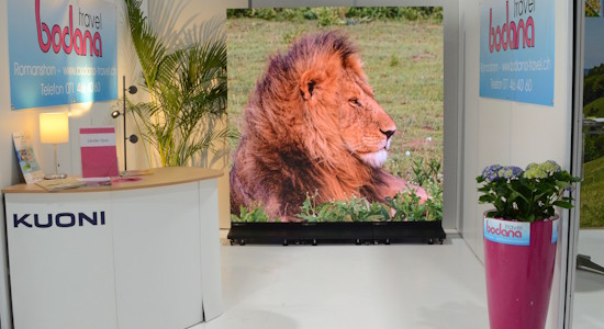 Die rahmenlosen LED‑Elemente lassen sich nahtlos aneinanderreihen. So entsteht bei Bedarf eine grössere LED Videowand, die Inhalte im Grossformat brillant darstellt. Das System bleibt dabei flexibel, mobil und schnell installierbar.